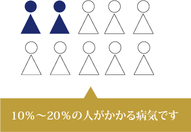 10人に1〜2人程度が「逆流性食道炎」を患っていると言われています。食生活の欧米化などの原因で、年々増加傾向にあります。