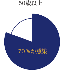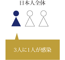 日本人の3人に1人が感染していると言われており、さらに幼少期の衛生環境が良好でなかった50歳以上で70%が感染しているといわれています。